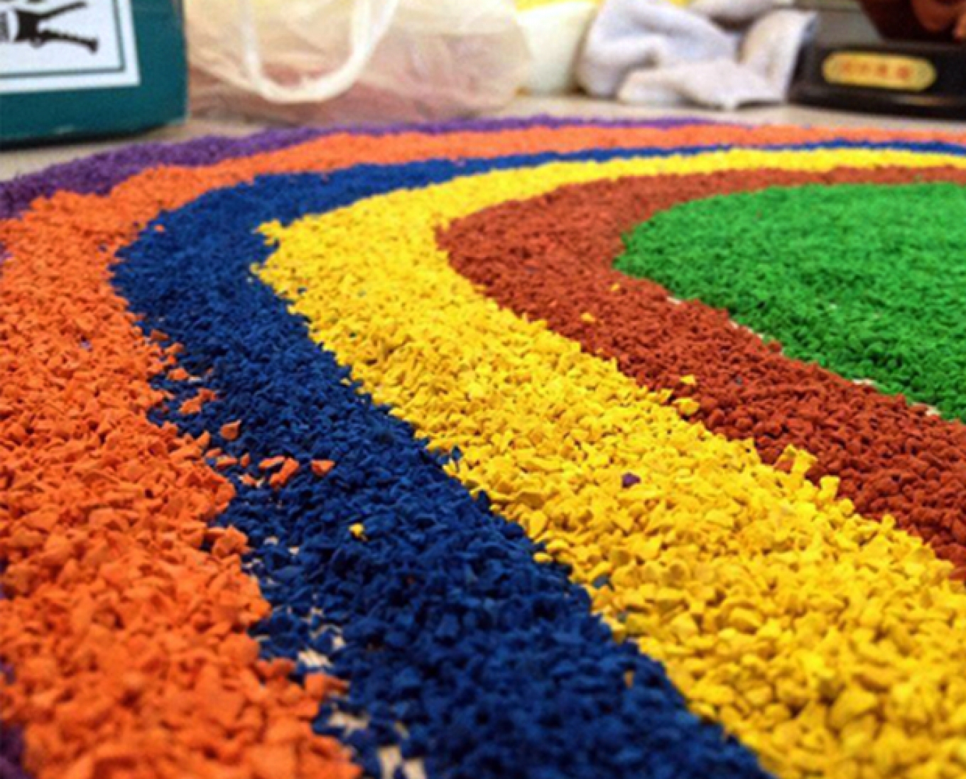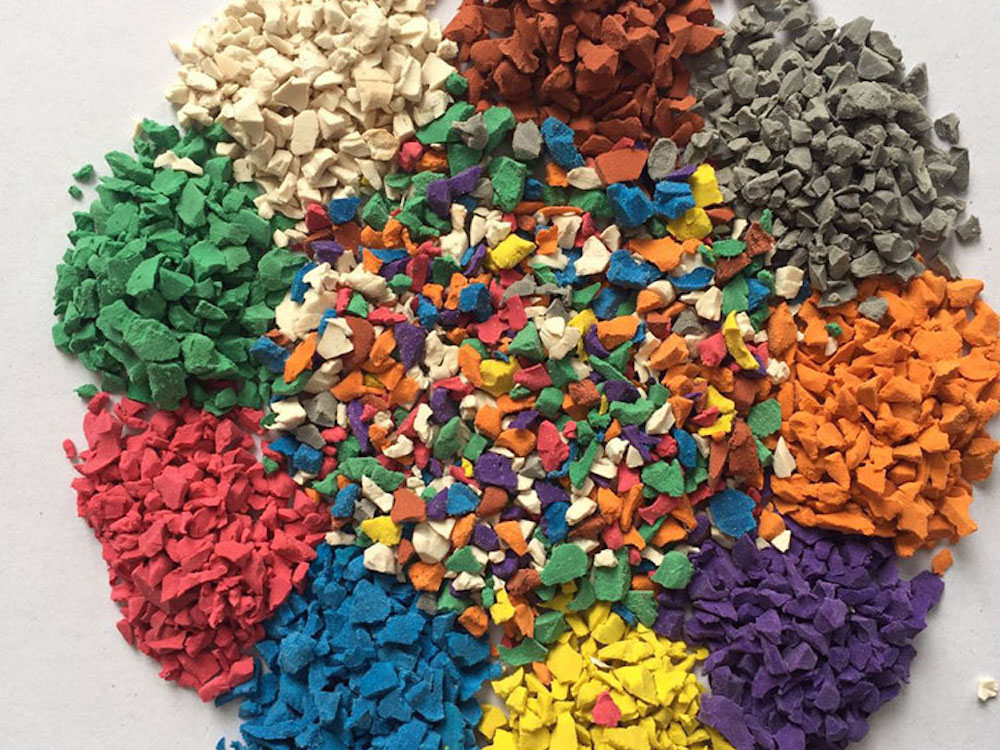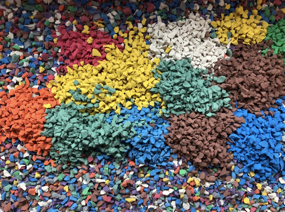 Гранулят из синтетического каучука и стойких пигментов. Экологически чистый материал, входит в состав бесшовных спортивных покрытий. Устойчив к воздействию ультрафиолета, водных и химических растворов. Сохраняет яркость цвета на протяжении 10–15 лет.