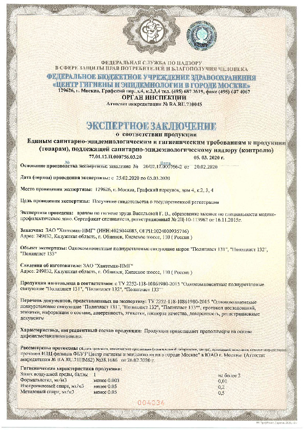 Динамическая вязкость при 23°С, мПа*с5500±1000 (вискозиметр Брукфильда, шпиндель №6)